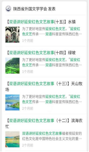 1 | 【序章】把延安故事讲给世界听 | 陕西省外国文学学会视频号、西外英师视频号 | 7月28日 | 836 |