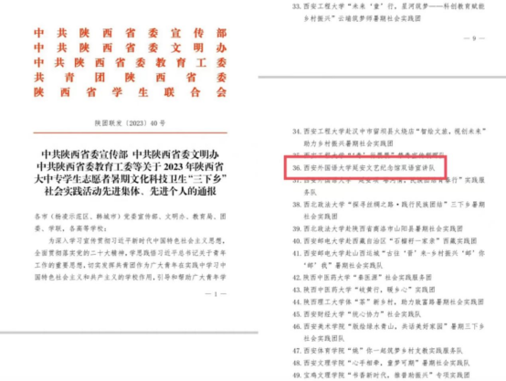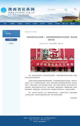 1 | “讲好延安红色文艺故事——双语科普宣传陕西红色文艺 经典”宣讲活动顺利开展! | 陕西省社科网 | 8月25日 | \ |
