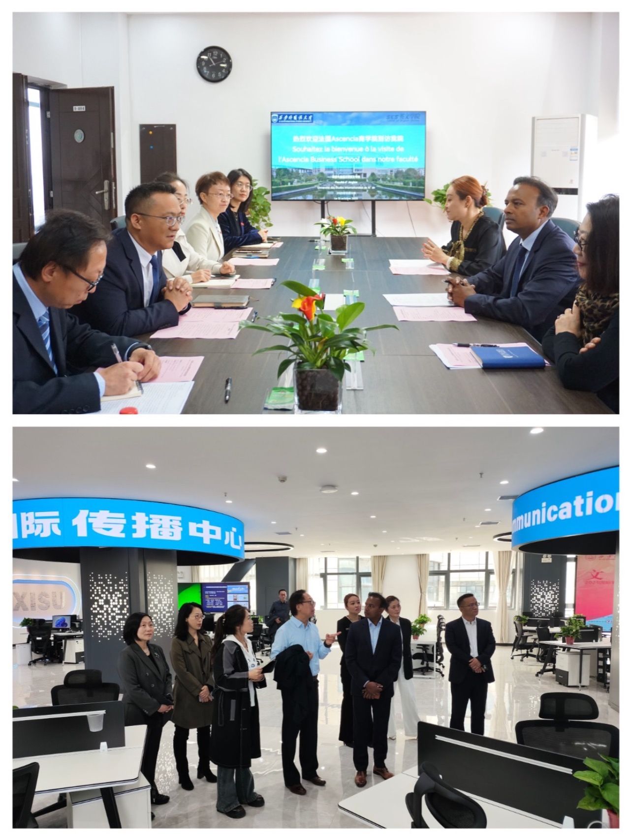 2025年10月13日,法国Ascencia商学院校长Emmanuel SANTOSH一行访问我校,国际部负责人张丽萍,中国办公室主任张静慧陪同访问,我校校长吴耀武在长安校区会见代表团 mk体育app下载,副校长邓滢,国际合作与交流处,英文学院相关负责人参加了会谈。