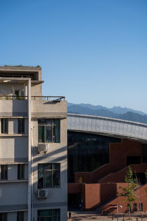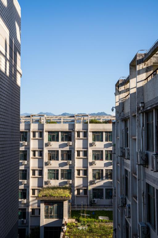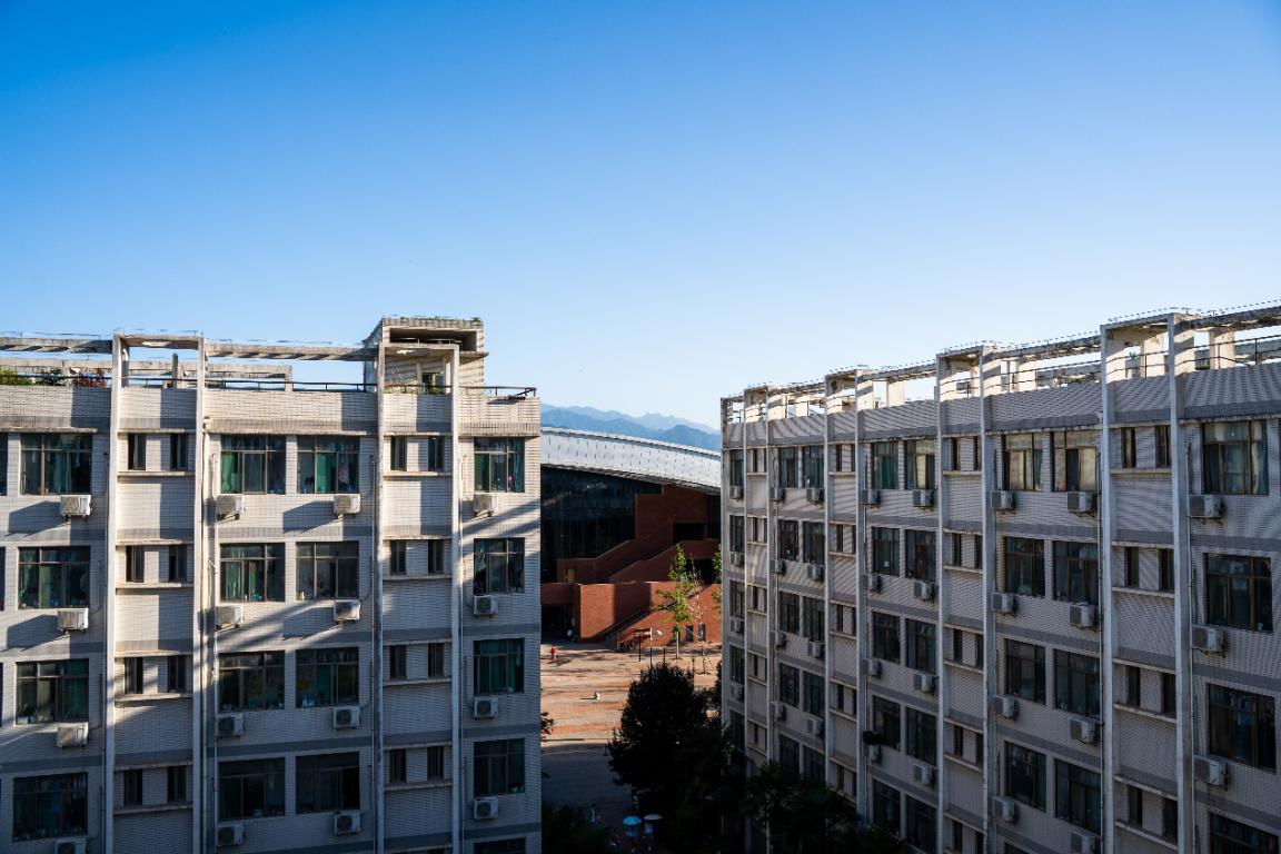 宿舍楼之间,眺望远山。