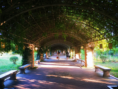 学子长廊(它连接着宿舍和教学楼,也是每个西外学子必经的道路,覆盖着的长藤绿叶花朵总是能给我们带来无数惊喜。无论是独自一人走在这条路上,还是与无数早八的伙伴们穿梭在这里,都是一个美好的体验。)